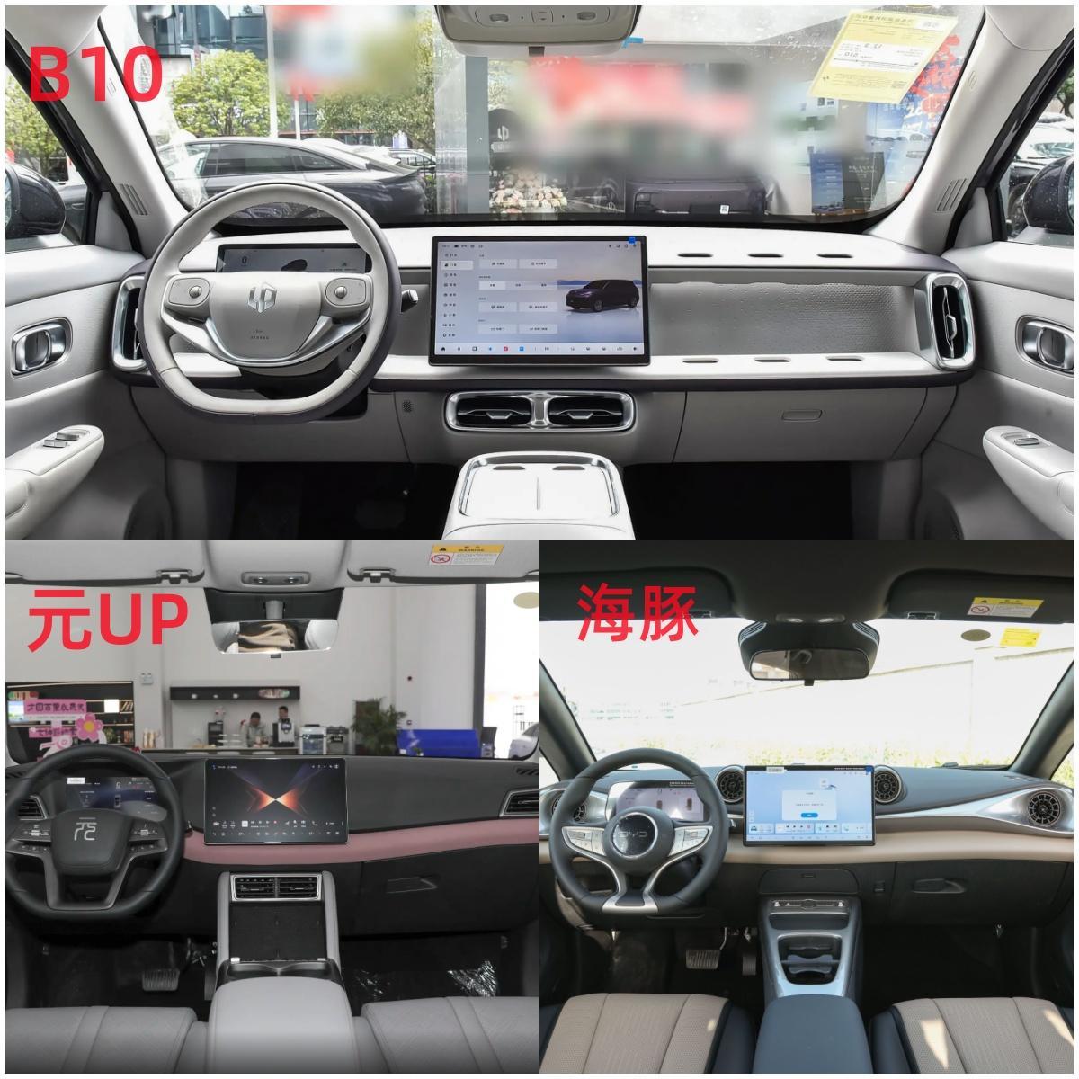 配置上的差异更能体现家用属性的贴心度:零跑B10前排座椅均支持电动调节,还配备了座椅加热和主驾驶通风功能,冬天上车不冰背、夏天久坐不闷热;海豚仅主驾驶支持电动调节,元UP则全系没有电动座椅调节。总结来看,零跑B10的舒适性配置更贴合全家出行的需求,而元 UP 和海豚的空间表现虽略逊一筹,但日常通勤、接送孩子也完全够用,满足基础家用毫无压力。