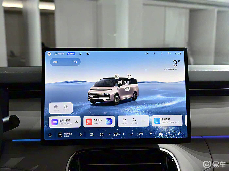 内饰方面,吉利银河V900座舱复刻了“空客头等舱”的设计,提供有晨曦米、霞光橙这2种内饰颜色,中控台上则配有19.8英寸AR-HUD+10.25英寸仪表屏+15.4英寸中控屏,内置了骁龙8295P芯片和星睿AI大模型的Flyme Auto 2车机系统,可实现离线语音交互、手车应用无缝流转、AI无麦K歌等功能。另外,车内还配有Flyme Sound无界之声27扬声器系统,9.1.6声场,功率2300W。